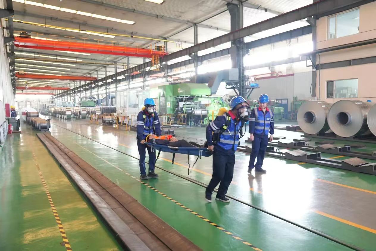 演练模拟工贸行业领域金属冶炼企业冷轧车间冷轧机断带着火事故,严格按照预案流程进行。现场设置警戒疏散组等6个小组,真实体现了紧急处置、抢险救援等环节,直观展示了企业处置突发事故、开展应急救援的能力。