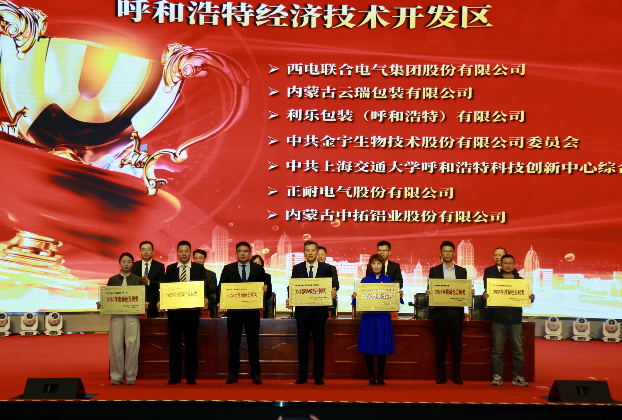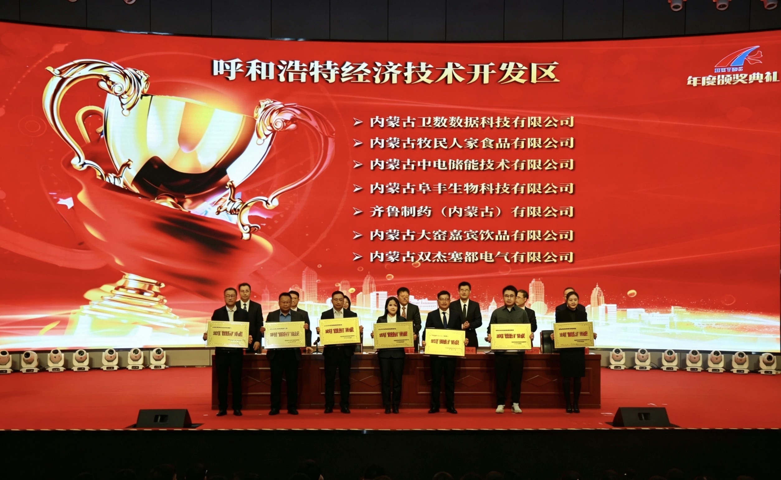 会议对2025年度作出突出贡献的63家优秀企业进行了集中表彰,表彰范围包括经济贡献、科技创新、就业促进、绿色发展、党的建设五大类12个奖项。内蒙古新远景集团、钜瓷新材料、内蒙古瑞芬生物等获奖企业代表在会上发言。