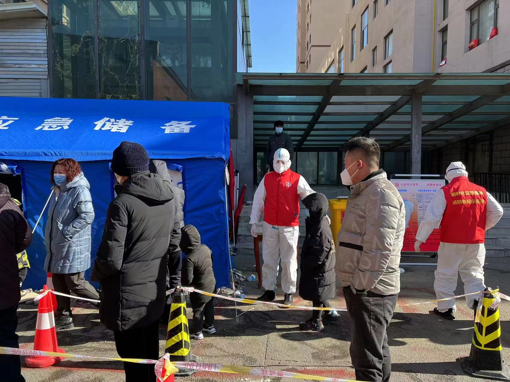 面对来势汹汹的疫情,开发区消防救援大队党支部立即响应,迅速组建防疫志愿者服务队,协助做好辖区范围内全员核酸检测,打赢疫情防控阻击战。期间,参与志愿服务队的消防救援人员按标准穿戴齐全个人防护装备准时到达指定检测地点,按照医护人员核酸检测进程,在自身绝对安全的情况下高效疏导现场备检群众有序排队、保持1米距离进行检测,不断提醒大家全程戴好口罩、不交谈、不聚集。通过疏导人群、维护现场等方式做到应检尽检,确保现场采集工作稳妥有序衔接。