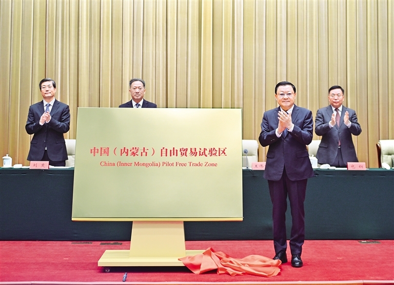 4月11日,中国(内蒙古)自由贸易试验区揭牌仪式暨建设动员大会在呼和浩特举行。自治区党委书记、人大常委会主任王伟中为“中国(内蒙古)自由贸易试验区”揭牌并作动员讲话。自治区党委副书记、自治区人民政府主席包钢出席并为呼和浩特片区、满洲里片区、二连浩特片区授牌。自治区政协主席张延昆出席,自治区党委副书记、政法委书记时光辉主持。