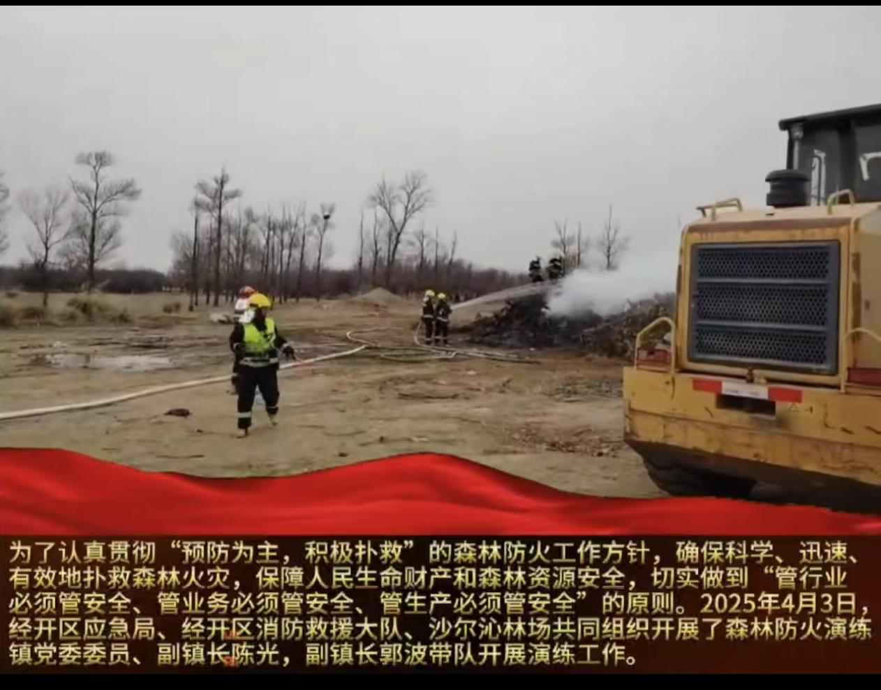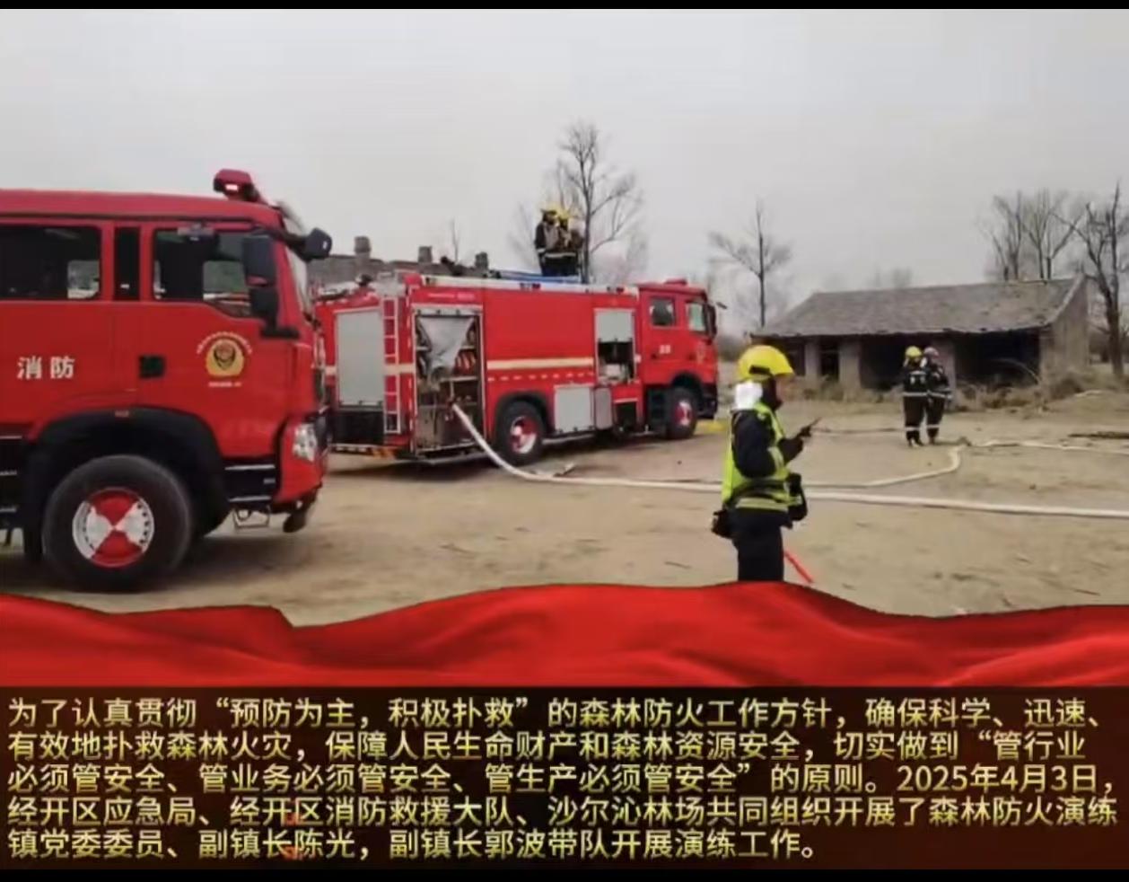 2025年4月3日,沙尔沁镇联合经开区应急局、消防救援大队开展了森林防火应急演练。演练中,参演人员积极响应,迅速行动,展现了良好的应急反应能力和团队协作精神。通过此次演练,进一步提升了我镇处置突发事故的能力,圆满完成了预定的演练任务。